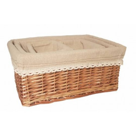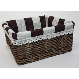 Квадратная плетеная корзина из ивовой лозы с тканевым вложением. Идеально подходит: - для упаковки подарков, подарочных наборов; - канцелярские и письменные принадлежности в кабинете; - для хранения различных предметов и продуктов; - игрушки или принадлежности для детского творчества в детской; - канцелярские и письменные принадлежности в каб..