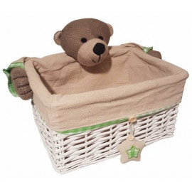 Прямоугольный плетеный короб белого цвета без крышки и с тканевым вложением, оригинально украшенный мягкой игрушкой. Такой короб, несомненно, порадует вашего ребенка, а также поможет Вам решить проблему "эстетичного" хранения различных вещей в детской комнате:- игрушки;- одежда;- канцелярские и письменные принадлежности;- а также все возможные прин..