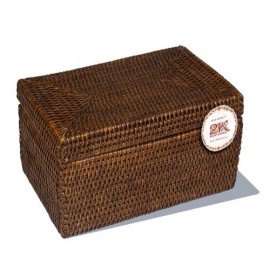 Шкатулка с крышкой из ротанга темно-коричневого цвета. Прочное и многофункциональное изделие из материала, который завоевал популярность во всем мире. Короб можно использовать для самых разнообразных задач. Он подходит для хранения: - украшений, косметики или медикаментов; - канцелярских и письменных принадлежностей в кабинете и на рабочем столе..