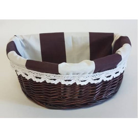 Корзина плетеная из ивовой лозы коричневого цвета. Может быть использована: - для упаковки подарков, подарочных наборов, цветочных композиций; - для хранения и транспортировки различных предметов и продуктов; - как декоративный элемент интерьера. Все наши корзины изготовлены из экологически чистого материала, который не воздействует на продукты..